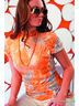 Детали: воротник-хомут, короткие рукава, яркий оригинальный принт