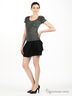 Элегантная и комфортная футболка из фактурного трикотажа. Круглая горловина. Короткие рукава. На плече декоративный цветок.
