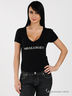 Детали: круглый вырез горловины, короткие рукава, стильная отделка стразами в виде логотипа бренда на полочке.