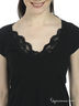 Детали: глубокий округлый вырез горловины, короткий рукав-реглан, вырез декорирован кружевом с пайетками и стеклярусом
