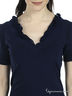 Детали: V-образный вырез декорирован шифоновыми оборками, короткий рукав с трикотажной манжетой