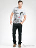 Классическая мужская футболка прямого кроя из высококачественного хлопка. Горловой вырез на манжете из эластичного трикотажа. Спереди декорирована рисунком - принтом.
