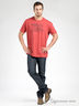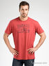 Мужская футболка прямого кроя красная. Горловой вырез на манжете из эластичного трикотажа. Декорирована рисунком - аппликацией.