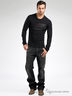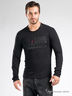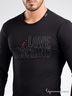 Футболка мужская с длинными рукавами, черная. Изготовлена из качественного хлопка. Округлый вырез горловины на манжете из эластичного трикотажа. На груди рисунок - аппликация с логотипом бренда.