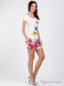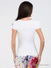 Детали: округлый вырез горловины, короткий рукав "фонарик", полочка украшена аппликациями и стразами