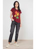 Футболка прямого кроя с короткими рукавами. Изделие с округлым вырезом горловины. Модель декорирована принтом.