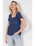 Футболка прямого кроя с короткими рукавами. Изделие с округлым вырезом горловины. Модель декорирована вышивкой на груди.