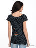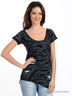 Детали: глубокий вырез горловины - лодочка, короткие рукава, ворот декорирован небольшой металлической эмблемой F5 золотого цвета, по спинке и на лицевой стороне декоративные вырезы с металлическими кольцами золотого цвета, по спинке шов по диагонали изделия.