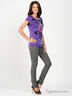 Детали: круглый вырез; короткий цельнокроеный рукав; на полочке оригинальная аппликация со стразами; низ изделия дополнен трикотажной лентой