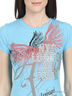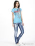 Детали: круглый вырез, короткие рукава, на полочке оригинальный принт с серебристыми стразами и прострочкой