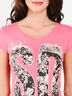 Детали: круглый вырез; короткий рукав; на полочке оригинальная аппликация со стразами