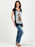 Детали: круглый вырез; короткий рукав; на полочке оригинальная аппликация со стразами
