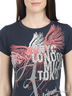 Детали: круглый вырез, короткие рукава, на полочке оригинальный принт с серебристыми стразами и прострочкой