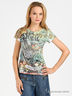 Детали: круглый вырез; короткий рукав; оригинальный принт; на полочке стразы