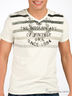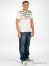 Классическая модель футболки. V-образный вырез.Винтажный рисунок-принт на передней полочке. Эффект "непрокраса" рисунка. Контрастные швы. Необработанные края на рукавах и по низу футболки.