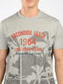 Трикотажная футболка белого цвета. Круглая горловина. Короткие рукава. На полочке принт.