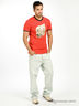 Мужская трикотажная футболка. Круглая горловина. Горловина и манжеты окантованы трикотажной резинкой. Футболка декорирована золотистой аппликацией.