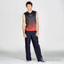 Майка без рукавов из тонкого трикотажного материала с перфорированными вставками. По низу яркий принт, на плечах отделка кантом.