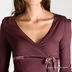 Классическая модель из натурального трикотажного материала. Детали лифа, скроенные на запах, создают глубокий V-образный вырез. Снизу лиф подчеркивает небольшая сборка и отделка узкой бархатной лентой в тон изделию.
