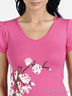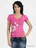 Детали: v-образный вырез, короткие рукава-фонарики с манжетами, полочка украшена оригинальным набивным рисунком