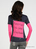 Детали: короткий прямой рукав, полочка декорирована росписью, спинка декорирована вставкой с надписью