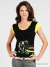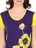 Детали: глубокий круглый вырез горловины, короткий рукав посажен на резинку с оборкой из сетчатой ткани, отделка - авторский принт.