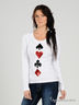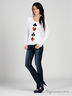 Трикотажная футболка прямого покроя с длинными рукавами. Круглая горловина. Полочка декорирована нашивками с пайетками.