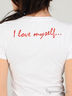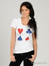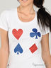 Приталенная трикотажная футболка. Круглая горловина. Короткие рукава. На полочке принт, украшенный стразами.