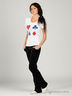Хлопок дает усадку, если стирать при высокой температуре. Хлопок сминается и при этом плохо поддается глажению, поэтому желательно гладить изделия с паром. Цветную одежду первый раз необходимо стирать отдельно от остальных вещей. Рекомендуемая температура стирки 40 t С. Изделия с принтами, с печатью можно гладить только с изнанки.