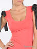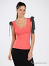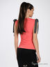 Приталенная трикотажная футболка. Глубокая круглая горловина. Короткие рукава, декорированные бантами из шелковистого шифона в горох.