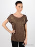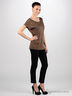 Детали: округлый вырез горловины декорирован оверлоком с люрексом, полочка декорирована оригинальным набивным рисунком со стразами
