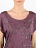 Детали: округлый вырез горловины декорирован оверлоком с люрексом, полочка декорирована оригинальным набивным рисунком со стразами