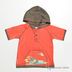 Футболка с капюшоном. Застежка-поло на кнопках, рукав реглан, открытые срезы, спереди накладной карман "кенгуру".