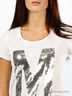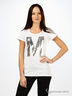 Однотонная трикотажная футболка, украшенная аппликацией в виде буквы "М" из пайеток.