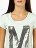 Однотонная трикотажная футболка, украшенная аппликацией в виде буквы "М" из пайеток.