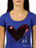 Однотонная трикотажная футболка, украшенная рисунком в виде сердца из пайеток.