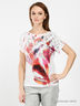 Детали: округлый вырез горловины, короткие цельнокроеные рукава, яркий узор