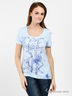 Детали: округлый вырез горловины, короткие рукава, спереди оригинальный принт со стразами
