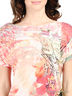 Детали: вырез лодочка; короткий рукав; оригинальный принт; сбоку изделие дополнено кулиской; декорирована стразами