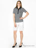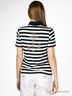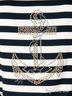 Футболка женская. Удлиненная трикотажная футболка прямого кроя из нежной, приятной на ощупь ткани. Отложной воротник, планка-застежка на кнопках. Короткий рукав. На спине изображение якоря, выложенное стразами.