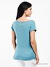 Модная футболка слегка приталенного силуэта. Округлый вырез горловины. Короткие рукава с отворотами. На полочке накладной карман. Модель украшена клепками.