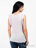 Оригинальная футболка приталенного силуэта. Округлый вырез горловины. Короткие рукава-крылышки. Спереди стильный принт и пайетки.