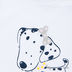 Детали: округлый вырез горловины, короткий рукав с декоративным отворотом, застежка на две кнопки на левом плечике, полочка украшена аппликацией
