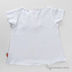 Модель свободного кроя. Края изделия обработаны оверлоком. Декоративные боковые разрезы и вырез. Футболка украшена множеством принтов и декоративным тканевым бантом.