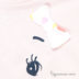 Детали: округлый вырез горловины, короткий рукав с декоративным отворотом, застежка на две кнопки на левом плечике, полочка украшена аппликациями и тканевым бантиком