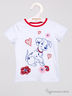 Чудесная футболка белого цвета с коротким рукавом для девочки. Выполнена из качественного материала. Декорирована изображением далматинца и цветов, а также стразами красного цвета. Короткий рукав, горловина обработана бейкой контрастного цвета, натуральный материал.