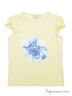 Футболка из эластичного трикотажа. Рукава-фонарик, края присобраны на резинку. Ворот обработан трикотажной бейкой. Фотопринт.
