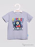 Футболка с коротким рукавом для мальчика, украшенная изображением монстра. Горловина обработана трикотажной бейкой, изделие по краям обработано контрастной нитью, натуральный материал.