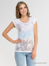 Футболка - незаменимая вещь в базовом гардеробе любой современной девушки. Модель с округлым вырезом горловины и короткими рукавами. Оригинальный принт украшает изделие.