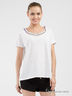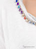 Замечательная майка на широких бретелях с округлым вырезом. Сзади изделие дополнено вставкой из кружева. Спереди модель украшена декоративными элементами. Отличный вариант для создания повседневного образа.